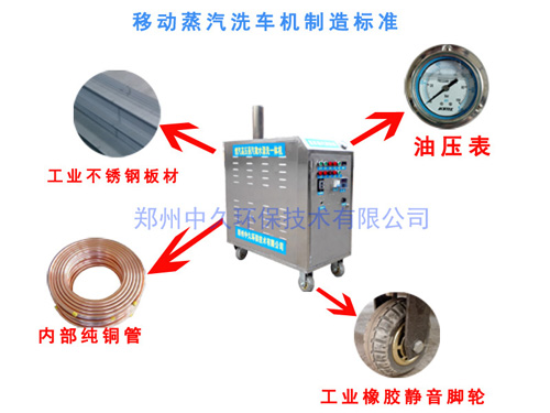 其余洗車機的核心配件就是高壓水泵及各種小配件,洗車水泵選用德國進口水泵,內置銅泵頭,穩定性能強,不易發生故障,穩定耐用。鄭州中久所選配件都是經過多年反復測試使用過的,性能和質量方面也都是比較穩定的,和各配件廠家也是長期合作的關系,有穩定的貨源和扎實的設備,是您購買蒸汽洗車機的。
